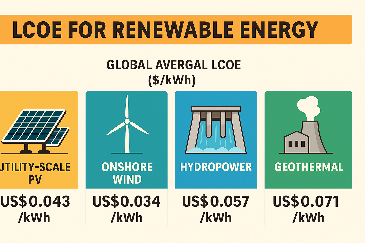 지열(Geothermal) US$0.071/kWh 자원 제한적, 안정적 기저부하 전원 :contentReference[oaicite:3]{index=3}
