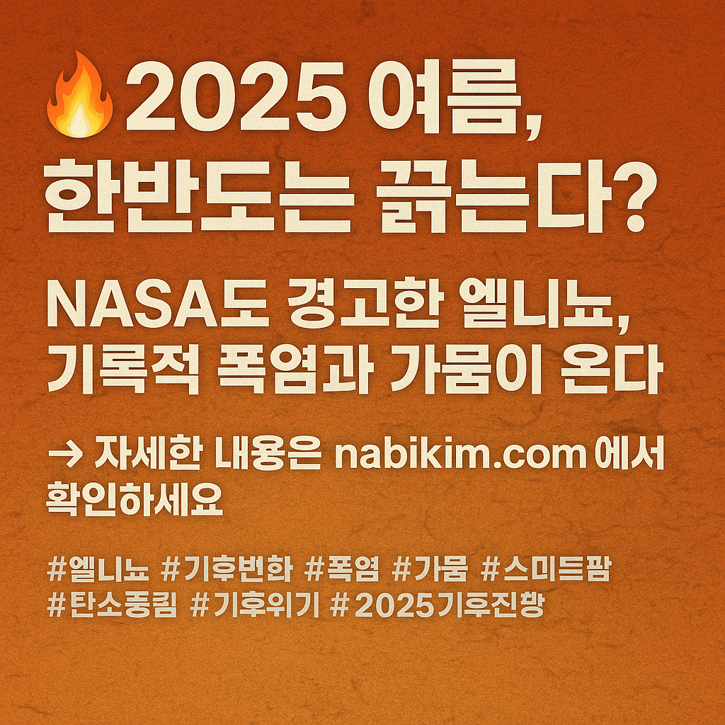 2025년의 엘니뇨는 단순히 “더운 여름”이 아닐 수 있습니다. 이 현상은 기후 위기의 경고음이며, 우리가 앞으로 마주할 ‘새로운 일상’의 예고편일지도 모릅니다.